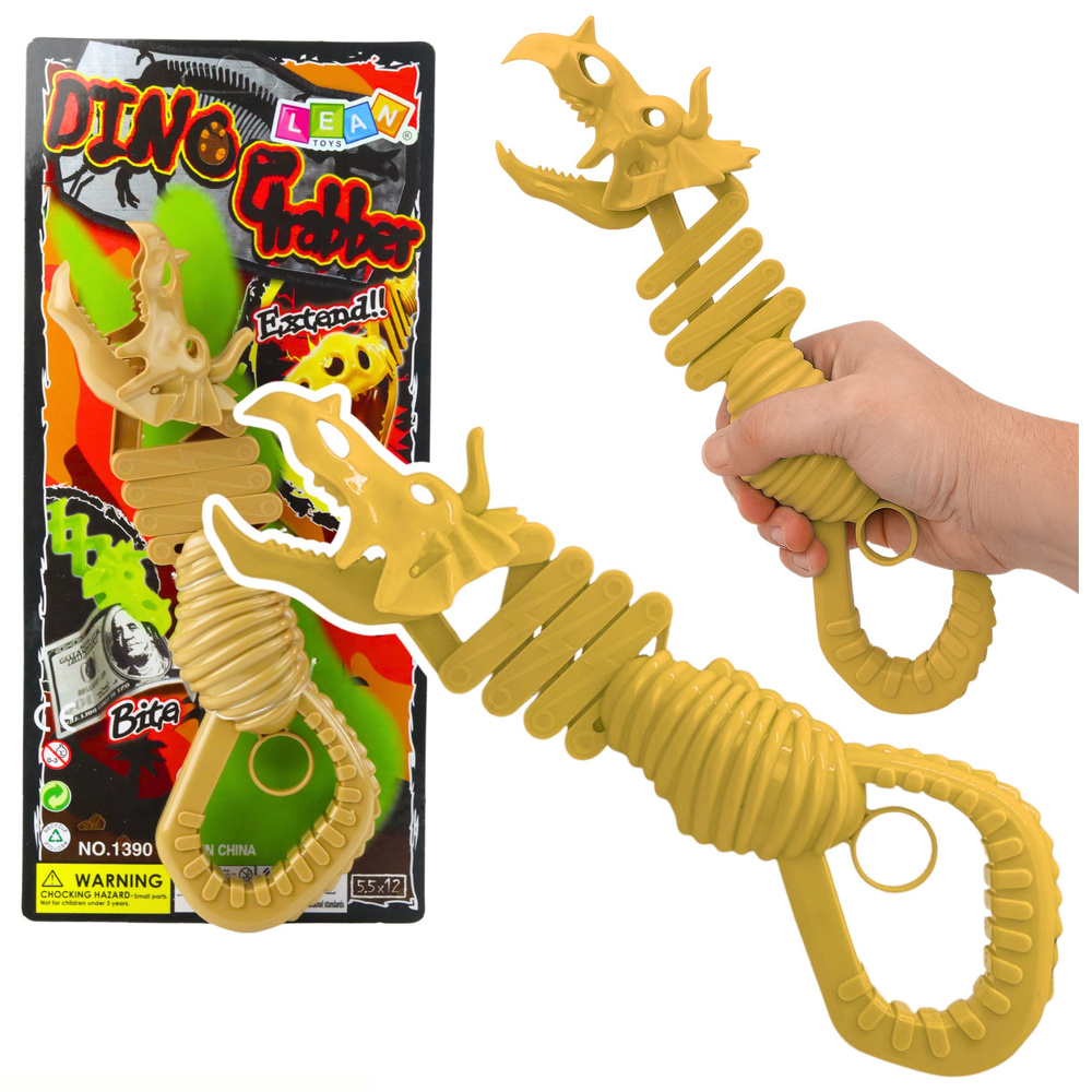 - Dieses interaktive Greifspielzeug in Form eines braunen Dinosaurierskeletts ist ideal für Kinder, die Dinosaurier und aktives Spielen lieben. Durch Drücken des Griffs schließt sich das Maul des Dinosauriers, was eine realistische Nagebewegung imitiert und