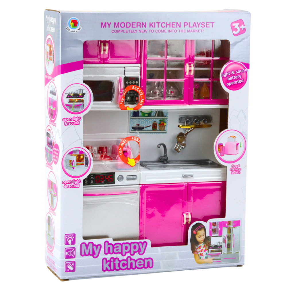 - Funktionen: Licht- und Soundeffekte, bewegliche Türen, Regale und Haushaltsgeräte imitieren echte