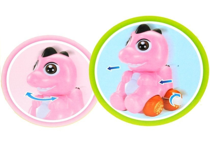 Ein niedlicher, farbenfroher kleiner Dinosaurier wird jedes Kind begeistern. Der Dinosaurier kann aufgeschraubt werden, so dass er auf einer ebenen Fläche gleitet. Einmal aufgeschraubt, bewegt er sich vorwärts, indem er seinen Kopf dreht.