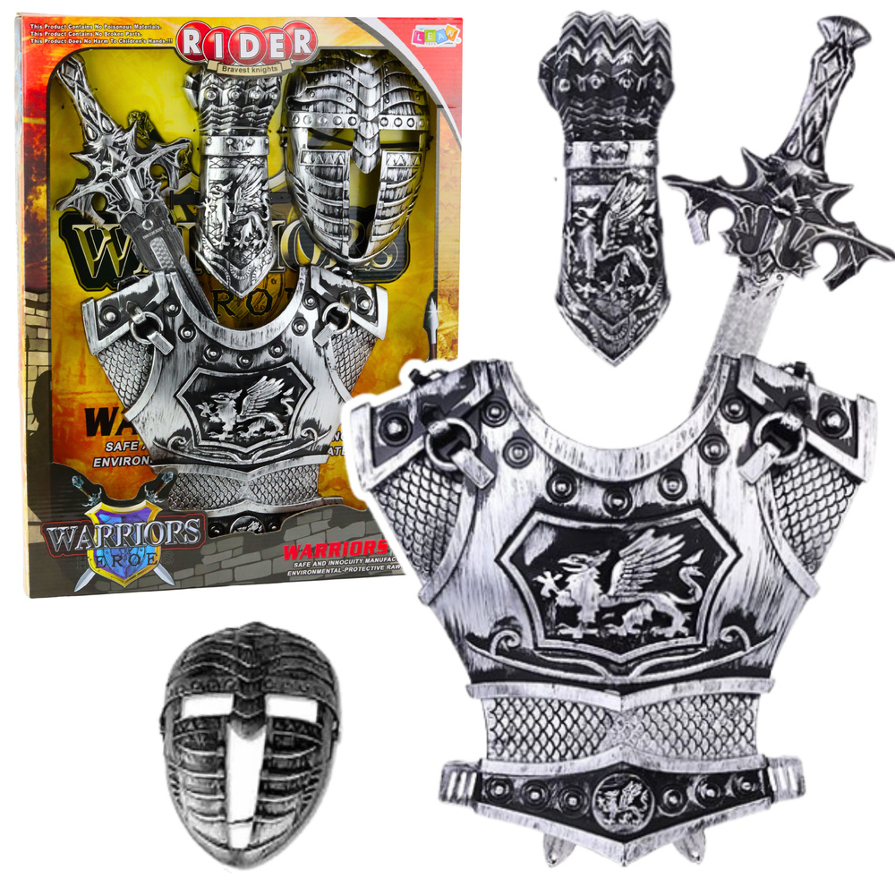 GROßES RITTERSET MASKE RÜSTUNG SCHWERT SCHUTZ SILBER