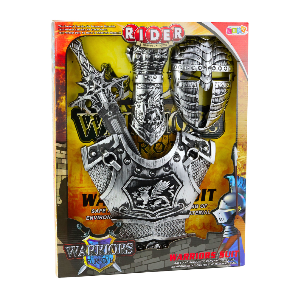Das Set enthält alle notwendigen Elemente zur Zusammenstellung einer kompletten Ritterausrüstung – eine solide Rüstung, einen Schild, ein realistisch nachgebildetes Schwert, einen Helm und ein zusätzliches Holster. Alle Komponenten sind aus Kunststoff mit hoher Widerstandsfähigkeit gegen mechanische Beschädigungen gefertigt und gewährleisten gleichzeitig die Nutzungssicherheit für die Kleinsten.