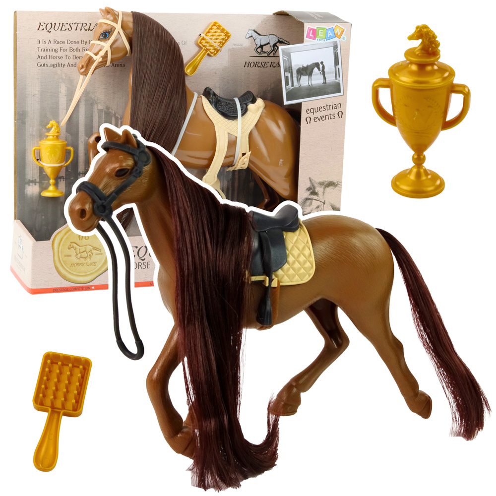 Zum Set gehören außerdem ein eleganter goldener Pokal, den ein Kind seinem Pferd für einen gelungenen Auftritt überreichen kann, eine Bürste zum Striegeln der Mähne sowie Sattel und Zaumzeug, mit denen Sie das Tier auf Shows, Ausritte oder Wettbewerbe vorbereiten können. Jedes Element des Sets wurde sorgfältig entworfen, um dem Kind maximalen Spaß zu bieten und ihm die Möglichkeit zu geben, eigene Spielszenarien zu entwickeln.