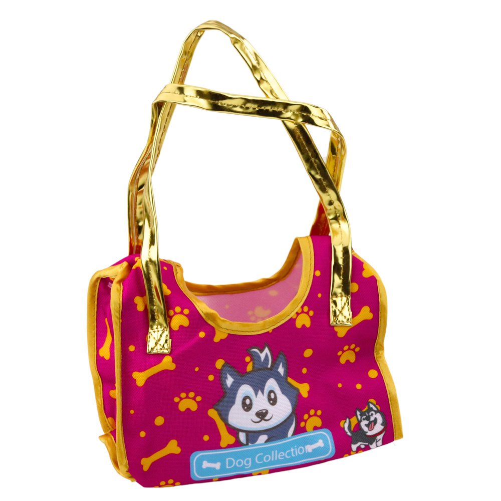 - Taschenfarbe: Rot-Pink mit Husky-Print und goldenen Henkeln