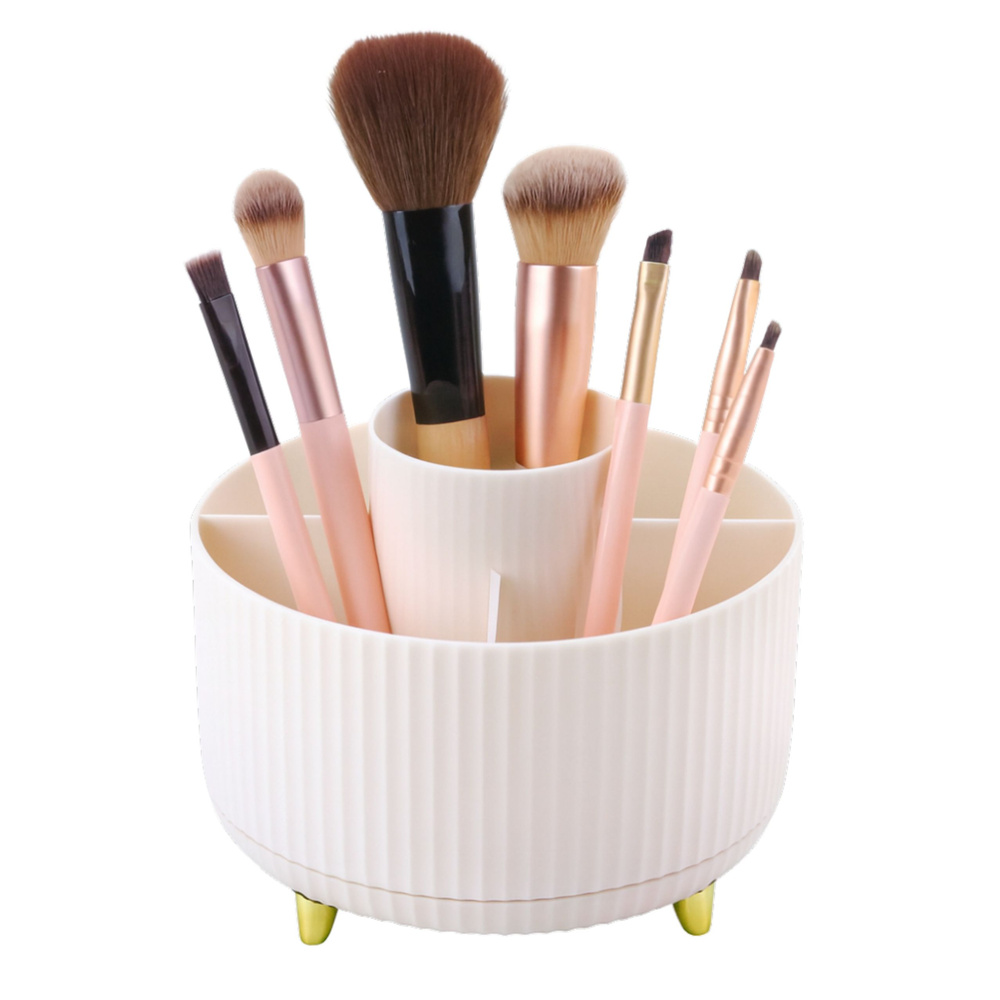 - Dieser praktische und stilvolle drehbare Organizer für Pinsel und Lippenstifte ist eine funktionale Lösung, mit der Sie Ihre Kosmetika und Make-up-Accessoires geordnet aufbewahren können. Er verfügt über einen stabilen, um 360° drehbaren Sockel.