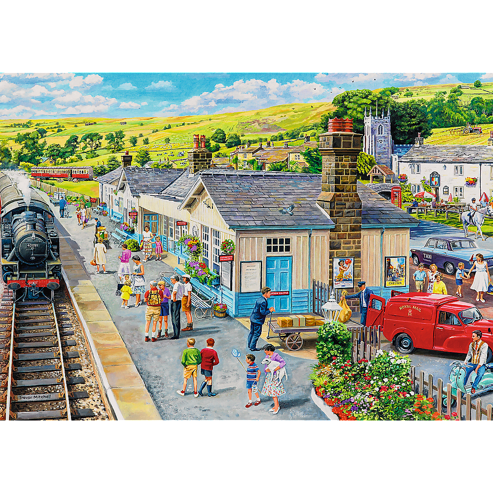 Das Puzzle Bahnhof zeigt einen kleinen, charmanten Bahnhof. Nach der Anordnung wird ein Bild mit den Maßen 683 x 480 mm erstellt.