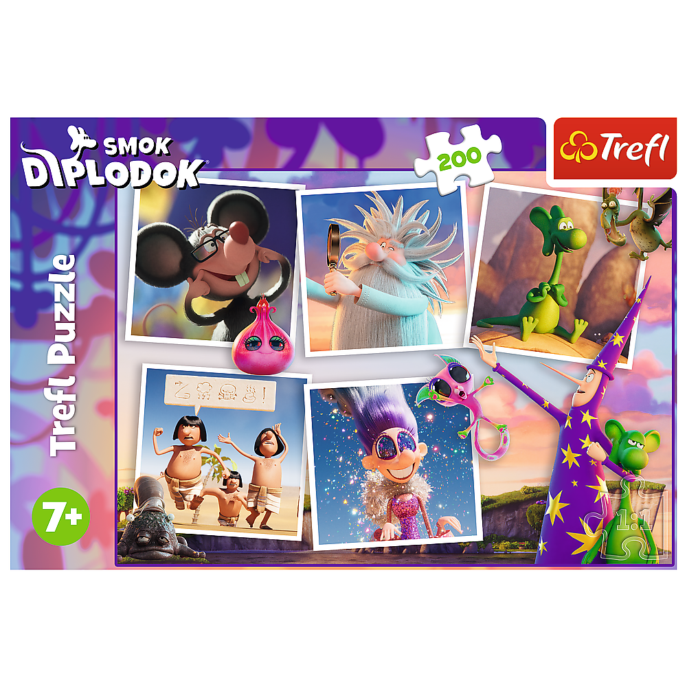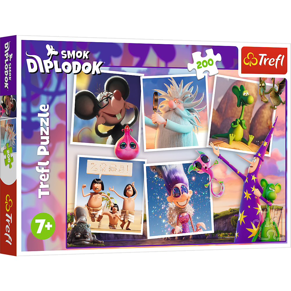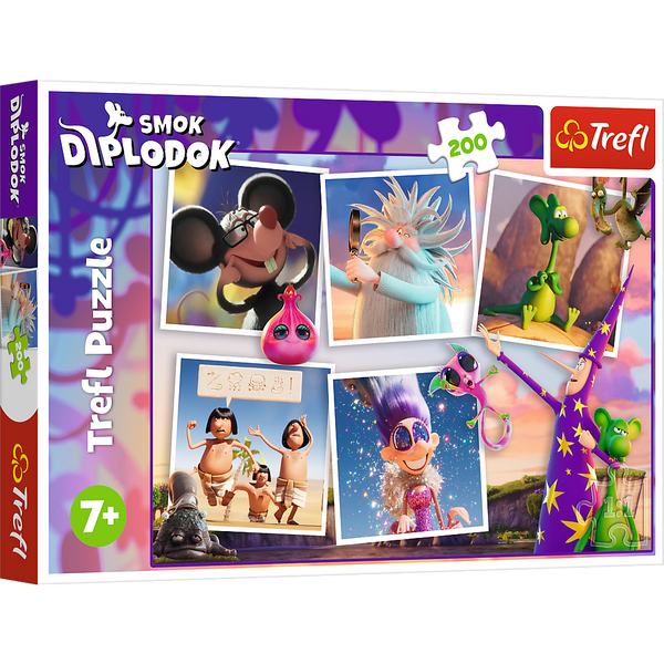 „Die Abenteuer von Diplodocus, dem Drachen“ ist ein 200-teiliges Puzzle, das junge Fans des Zeichentrickfilms „Diplodocus, der Drache“ begeistern wird. Nach dem Zusammenbau entsteht ein Bild im Format 480x340 mm.