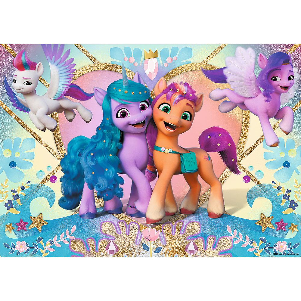 Glitzerpuzzle 100-tlg. My Little Pony Shiny Ponies, bestehend aus 100 Teilen, wurden speziell für My Little Pony-Fans entworfen. Das Puzzle ist mit zartem Goldglitzer überzogen, wodurch sowohl die Verpackung als auch die einzelnen Elemente wunderschön schimmern und einen tollen Eindruck machen. Puzzles sind eine wunderschöne, glänzende Dekoration für das Kinderzimmer.
