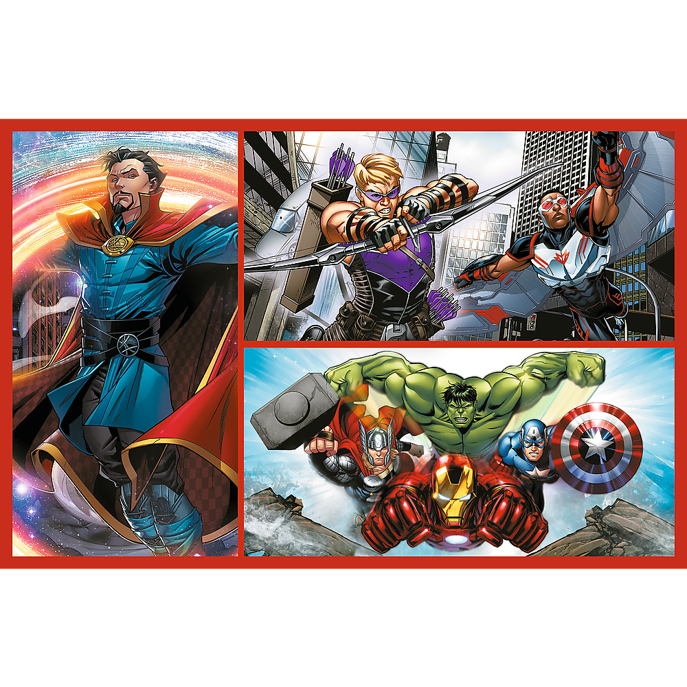 „Werde ein Held“ ist ein Puzzle, das Collagen von Marvel-Superhelden aus dem Avengers-Team zeigt. Mit jedem Puzzle können Sie ein Bild im Format 275 x 180 mm erstellen.