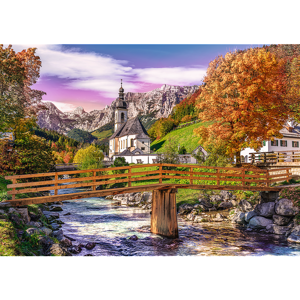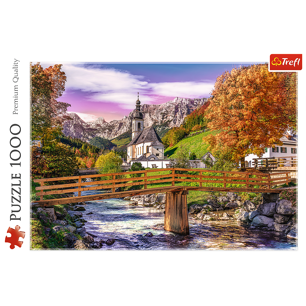 Ein 1000-teiliges Puzzle, das die atemberaubende bayerische Landschaft in Herbstfarben darstellt. Nach dem Zusammenbau entsteht ein Bild im Format 683x480 mm.