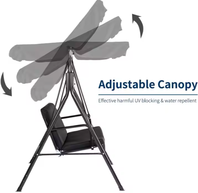 - Eine einzigartige Form der Entspannung, die Komfort, Funktionalität und modernen Stil vereint. Die schwarze Gartenschaukel ist ein Produkt für alle, die Wert auf Komfort und Ästhetik ihres Außenbereichs legen.