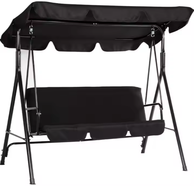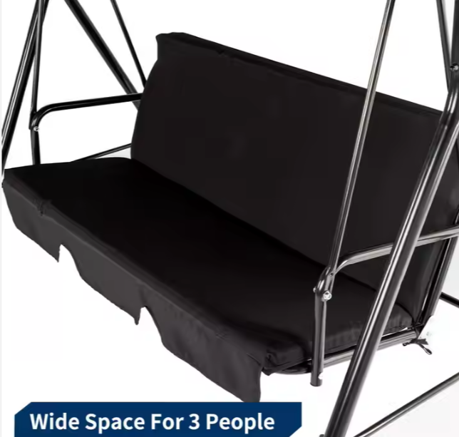 Gartenschaukel für drei Personen, Schaukelkissen, Matratze, Schwarz