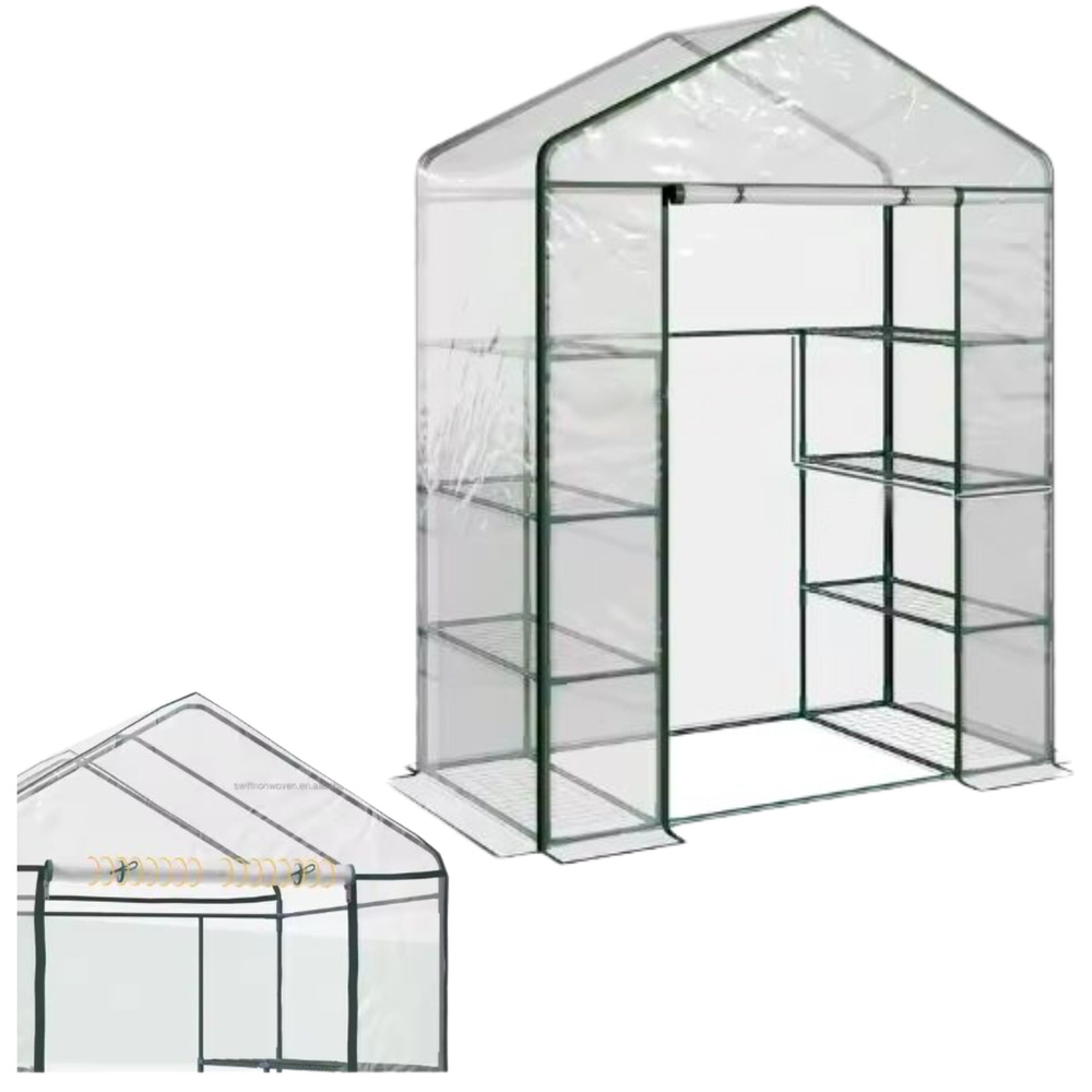 Dieses Modell verfügt über vier Seitenregale und zwei freie Ablageflächen am Boden, die die Lagerung höherer Töpfe oder die Kultivierung von Kletterpflanzen ermöglichen. Praktische Türen mit Reißverschluss ermöglichen einen einfachen Zugang zum Innenraum, und die T-Verbinder ermöglichen einen schnellen und intuitiven Aufbau ohne Werkzeug.