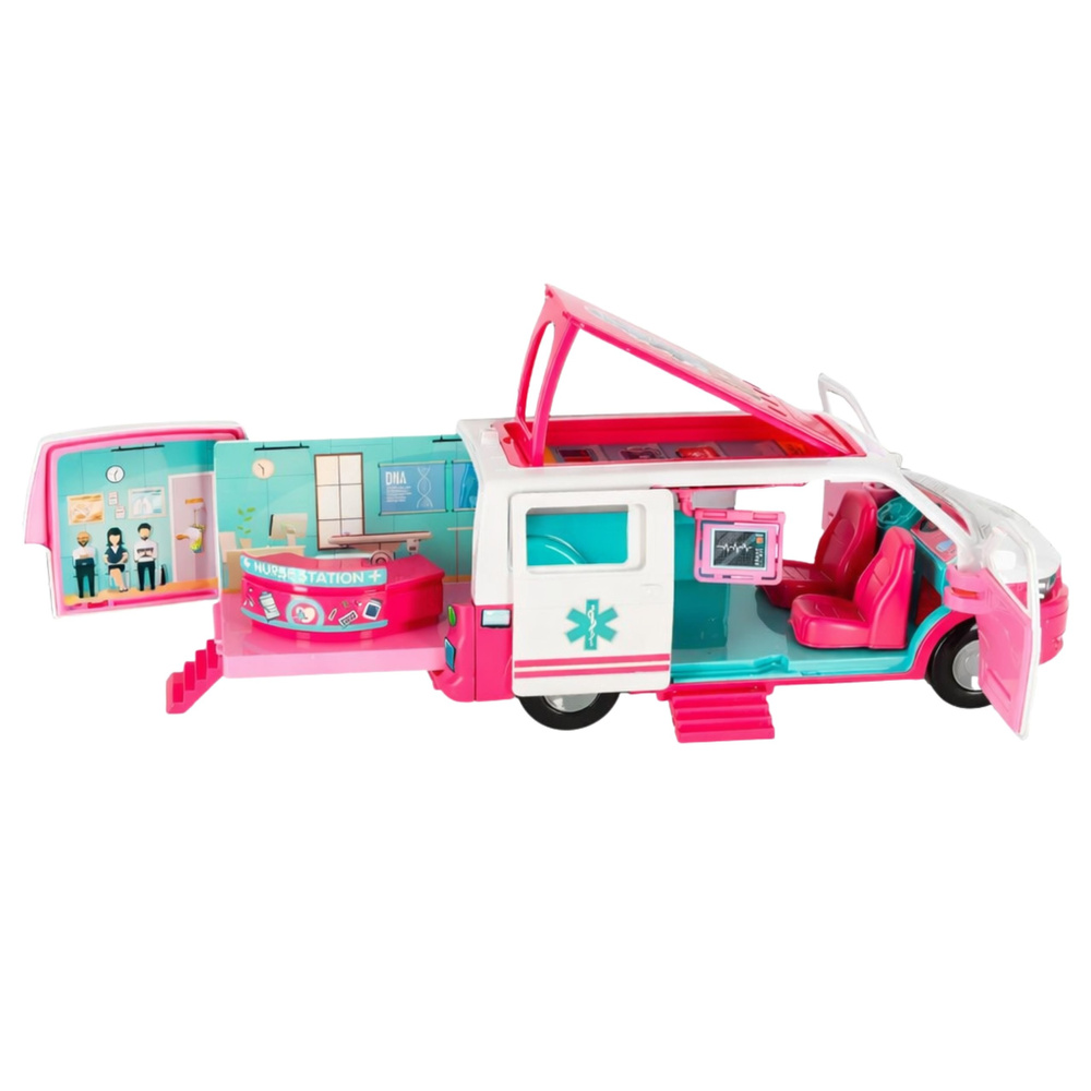 - Dieses mobile Krankenhaus in Form eines großen Krankenwagens ist ein umfassendes Spielzeugset für Kinder, die sich für medizinische Themen interessieren und gerne Rollenspiele spielen. Das Fahrzeug dient als Krankenwagen und lässt sich im ausgeklappten Zu