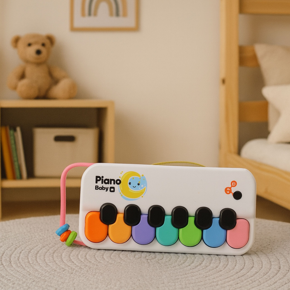 - Das Baby-Piano ist ein farbenfrohes, interaktives Musikspielzeug, das speziell für die jüngsten Kinder entwickelt wurde. Es soll Kindern auf einfache und ansprechende Weise die Welt der Melodie, des Rhythmus und der Farben näherbringen.