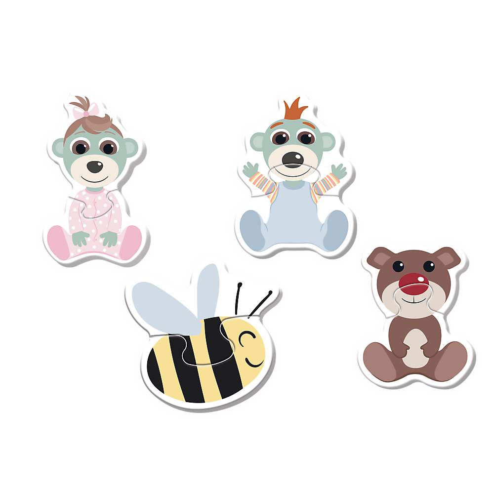 4 Puzzles mit jeweils zwei großen, dicken Teilen – ideal für den Einstieg ins Spiel für Kleinkinder ab 1 Jahr.