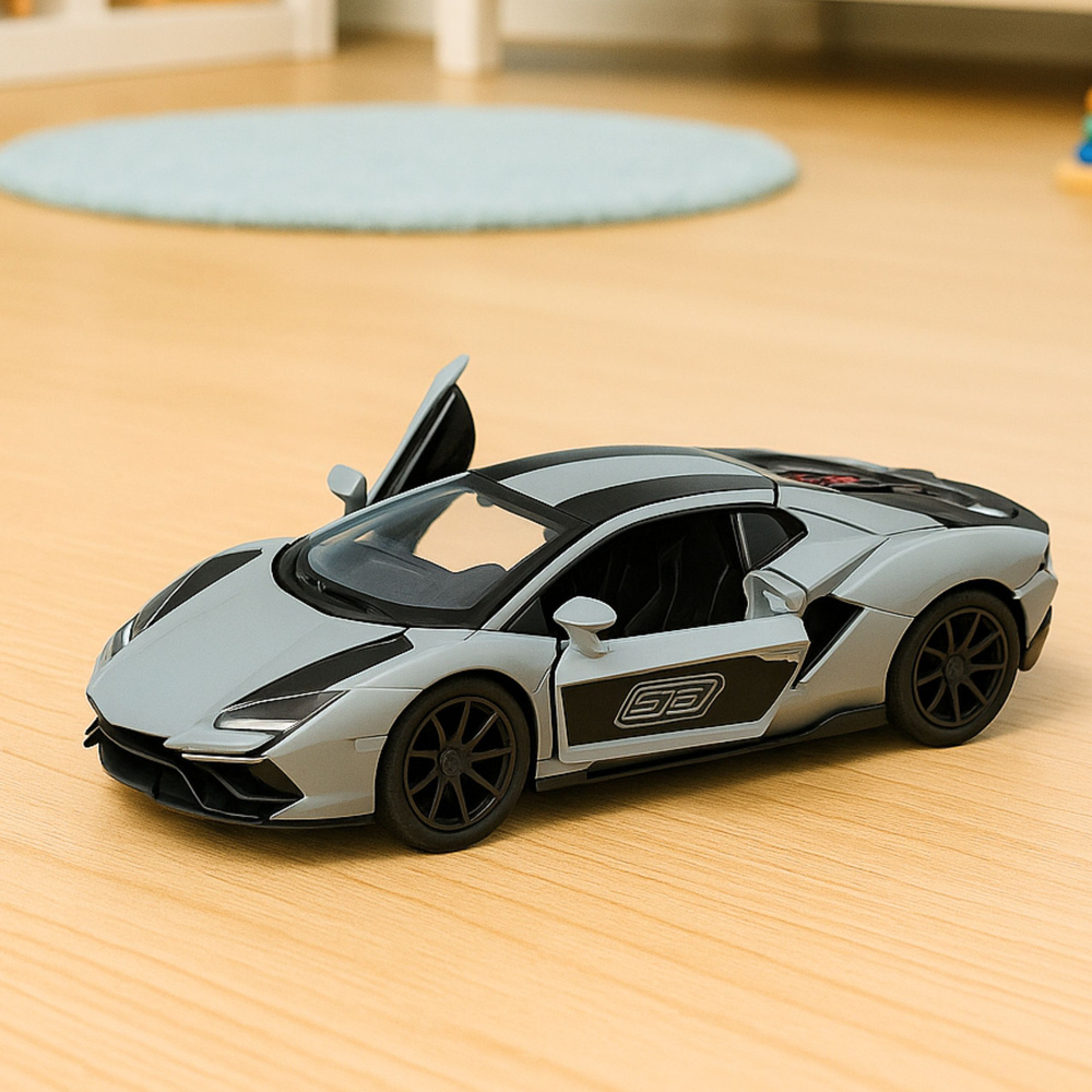 Dieser Metall-Rennwagen im Maßstab 1:32 ist ein attraktives Spielzeug für Kinder, die dynamisches und kreatives Spielen lieben. Das Modell ist mit viel Liebe zum Detail gefertigt und besticht durch sein unglaublich realistisches und sportliches Design. Die robuste Metallkarosserie sorgt für Langlebigkeit und Widerstandsfähigkeit und macht den Wagen auch für intensives Spielen geeignet. Die zu öffnenden Türen erhöhen den Realismus und ermöglichen es Kindern, die Fahrzeugstruktur besser zu verstehen und Alltagssituationen nachzuspielen.
