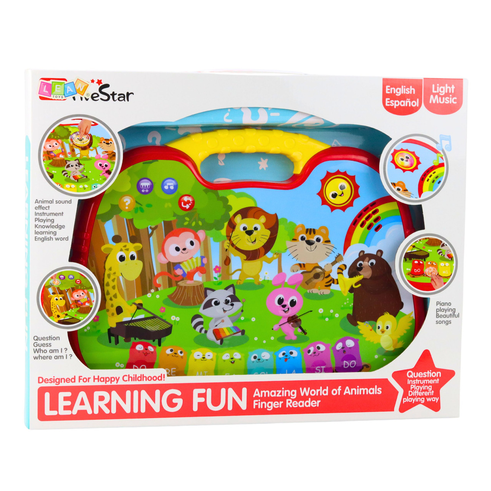 Das Spielzeug bietet Sprachumschaltung (Englisch und Spanisch), einen Klaviermodus mit Solmisationslauten und eine Instrumentenfunktion, mit der Kinder verschiedene Klangfarben entdecken können. Im Quizmodus stellt das Board Fragen wie „Wer bin ich?“ oder „Wo bin ich?“, die logisches Denken, Konzentration und Gedächtnis fördern. Zusätzlich spielt das Board Tiergeräusche und Lernbotschaften ab und ermöglicht Kindern so, die Natur auf spielerische Weise zu erkunden.