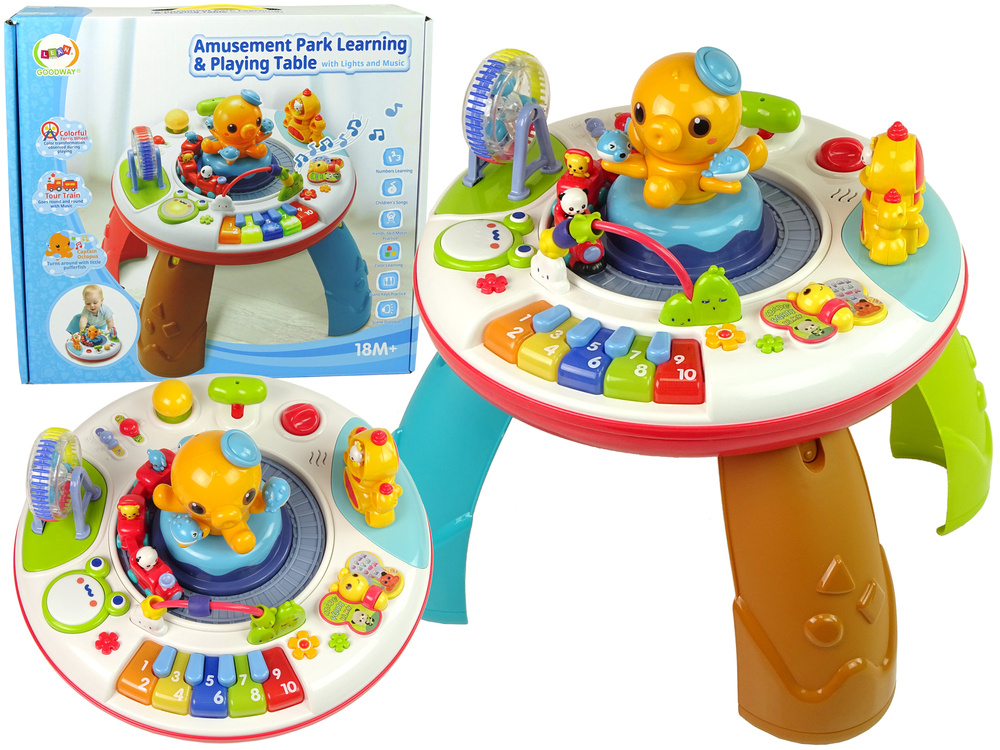 Ein interaktiver Tisch mit vielen Möglichkeiten ist nicht nur eine Idee für ein sehr interessantes Spiel, sondern auch eine bemerkenswerte Möglichkeit, die richtige Entwicklung Ihres Babys zu fördern. Das Spielen mit ihm entwickelt Ihr Baby umfassend. Er stimuliert das Gehör und die Sehkraft des Kleinkindes und fördert seine manuellen Fähigkeiten und Sinne. Das Kind lernt so die Welt um sich herum kennen und die Fähigkeit, die Welt, Formen und Farben zu verstehen.