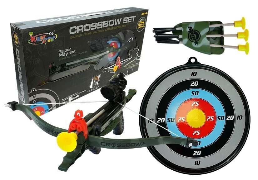 Oprócz kuszy w skład zestawu wchodzi kołczan w kolorach maskujących, 3 bełty z żółtymi przyssawkami oraz tarcza pozwalająca na trenowanie celnego strzelania. Stylowe opakowanie, w którym otrzymują Państwo zestaw świetnie nadaje się na prezent dla młodego entuzjasty zabawkowych militariów.