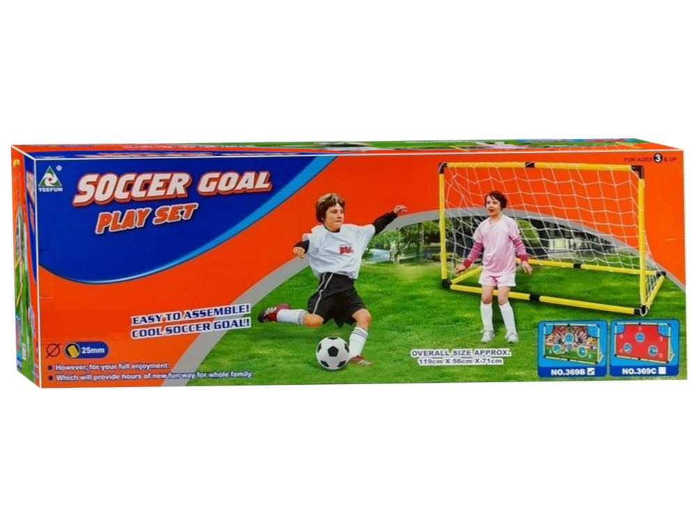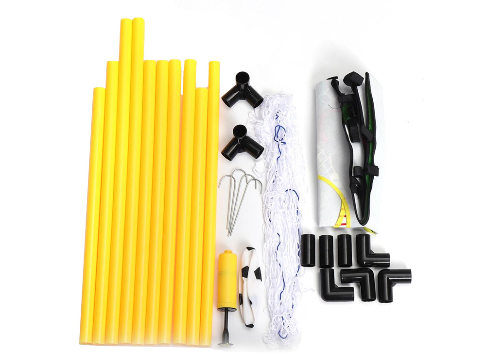 Dank des leichten, faltbaren Tores kann ein Amateurspiel fast überall gespielt werden! Das Tor besteht aus leichten und massiven Rohren mit einem Durchmesser von 2,5 Zentimetern. Das Set enthält einen Anhänger mit drei Löchern, mit dem Sie lernen, wie Sie genau schießen. Der größte Vorteil dieses Tores ist sicherlich das Vorhandensein eines Netzes, was bedeutet, dass der Torhüter nach einem erzielten Tor nie nach dem Ball suchen muss. Im Set ist selbstverständlich eine Kugel enthalten.