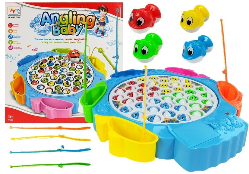 - Angel-Geschicklichkeitsspiel für die ganze Familie. Enthält 4 Angelruten, 42 Fische und eine bunte Basis. Das Spiel entwickelt Reflexe und Konzentration. Für Kinder ab 3 Jahren. AA-Batterien (nicht im Lieferumfang enthalten).