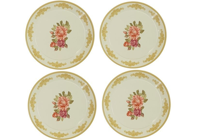 Das Set ist in schönen Weiß- und Cremefarben mit Rosenmotiv gefertigt.
