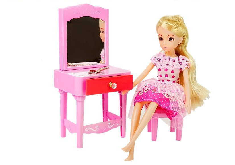 Puppe + Möbelset Bett Kleiderschrank Schminktisch