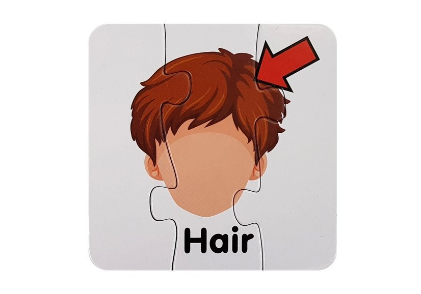 Lernrätsel sind eine gute Übung für die Fantasie, erweitern das Wissen und üben Geduld. Das Ganze wird sich in Zukunft für das Kind auszahlen. Durch das Anpassen der Formen des Puzzles lernt er die Namen einzelner Körperteile und das Anpassen von Formen. Jedes Körperteil ist auf Englisch beschriftet, dank dessen Sie die grundlegenden Wörter lernen. Sie können aus allen Rätseln bis zu 10 Verbindungen erstellen. Nach dem Anordnen sehen Sie Bilder wie: Kopf, Augen, Mund, Nase.