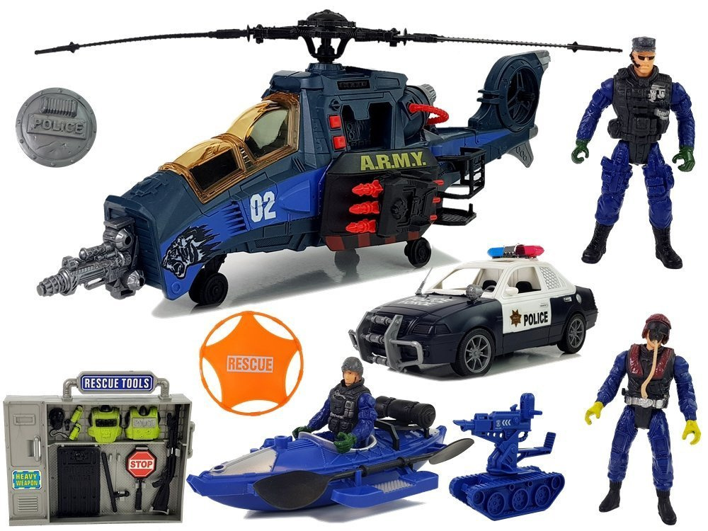 Polizeihubschrauber Set Auto Polizei Boot Soundwaffe