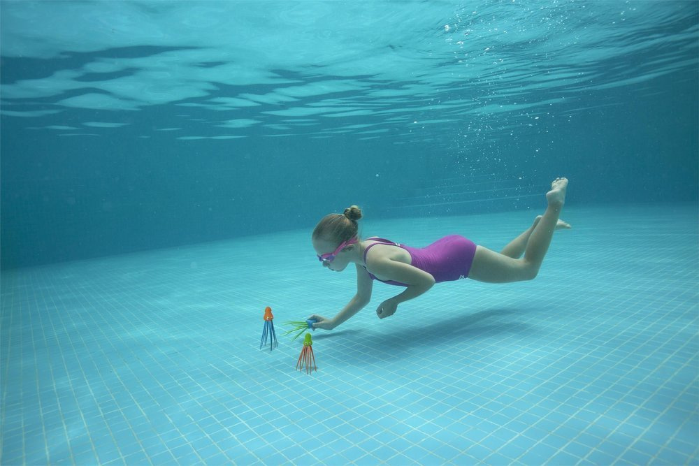 Dieses tolle Set für Unterwasserspiele wird Ihrem Kind viel Spaß machen, das mit seinen Freunden einen Unterwasserwettbewerb veranstalten kann. Ab sofort können Urlaubsspiele noch interessanter und aktiver werden. Das Set ist für Kinder ab 3 Jahren gedacht und ist ideal für das erste Schwimmen lernen, die Bewegungsformung des Kindes und die Gewöhnung an das Wasser. Der Oktopus zum Tauchen besteht aus sicheren Materialien und enthält kein Latex. Sie haben eine Last, die dazu führt, dass sie immer auf den Boden fallen und aufrecht auf den Füßen bleiben.