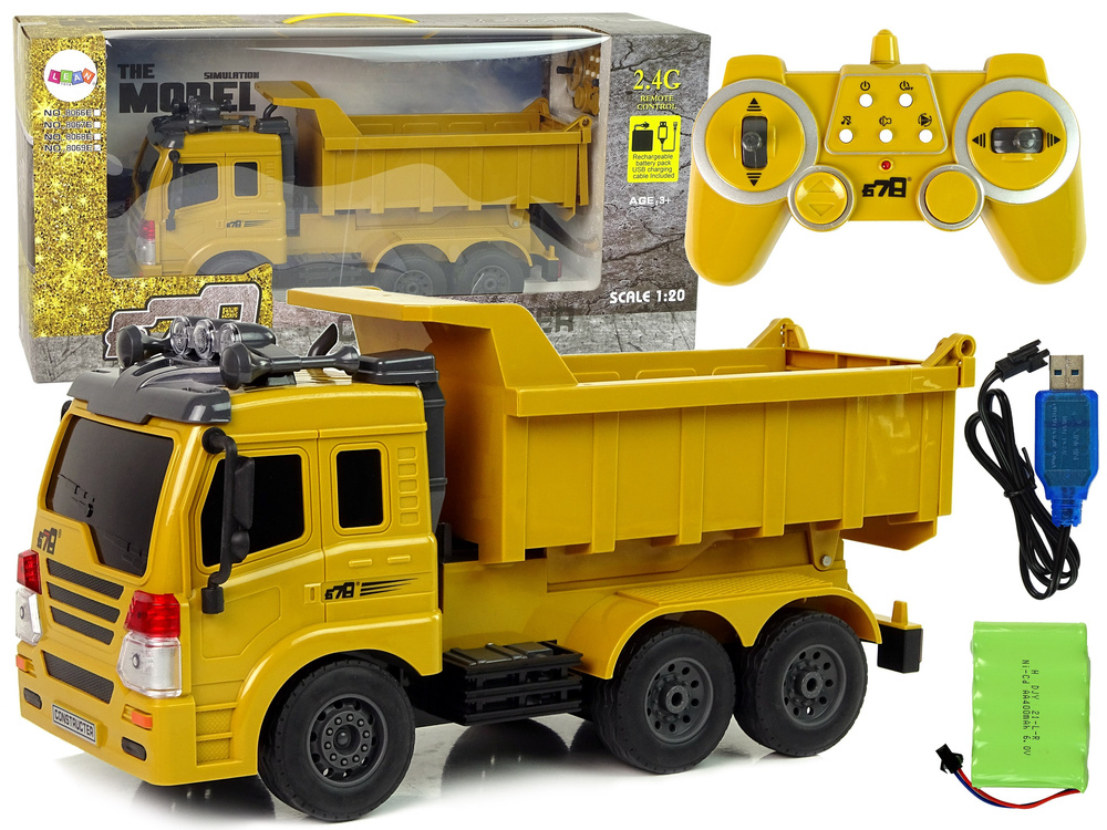 Znajdujący się w zestawie pilot RC 2.4G posiada wiele ciekawych funkcji. Odpowiada on za jazdę przód/tył, prawo/lewo oraz podnoszenie wywrotki. Jesteśmy pewni, że sprawi to ogromną radość każdemu dziecku. Obsługa pilota jest bardzo prosta i intuicyjna . W konstrukcji auta nie zapomniano o najważniejszych szczegółach i detalach — wszystkie zostały podkreślone kontrastującym, czarnym kolorem. Na pilocie znajdują się także opcję wyciszenia głośności.