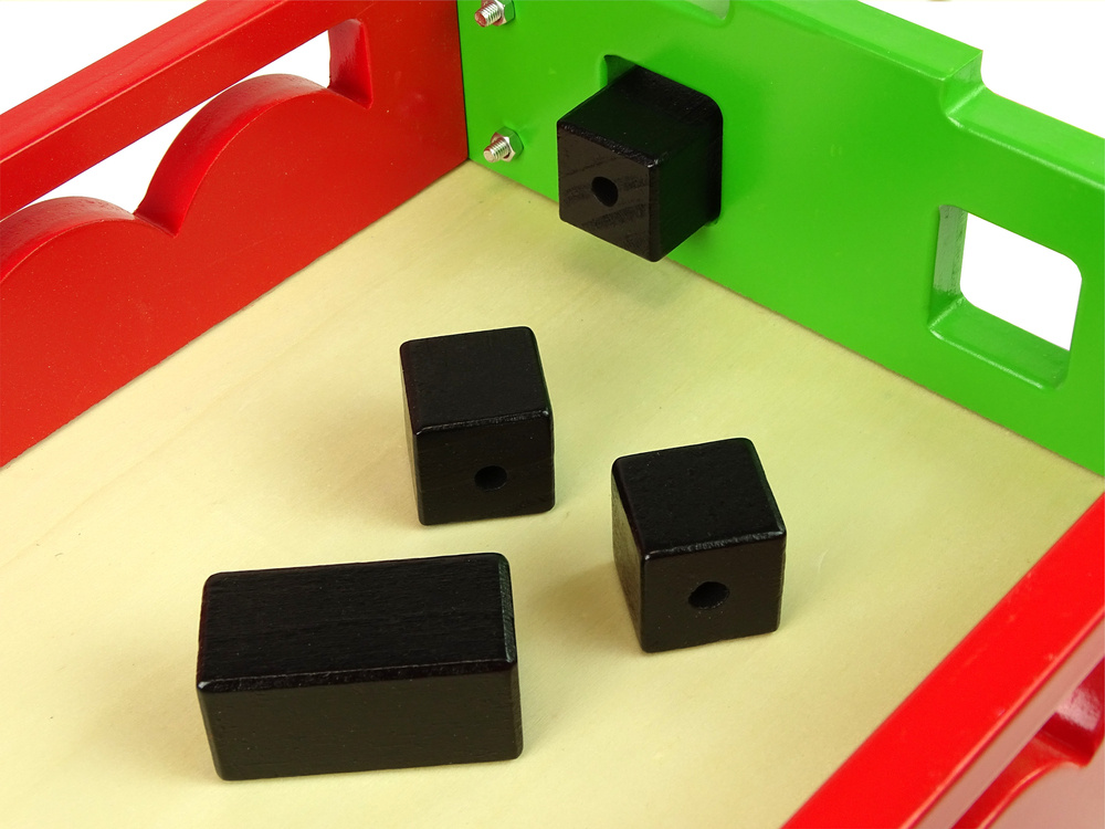 Zabawka jest kolorowa, została wykonana z wysokiej jakości drewna – elementy są doskonale oszlifowane i pomalowane farbami bezpiecznymi dla środowiska. Nie zawiera ponadto żadnych ostrych elementów i krawędzi, dziecko podczas zabawy nie zrobi sobie nią krzywdę.