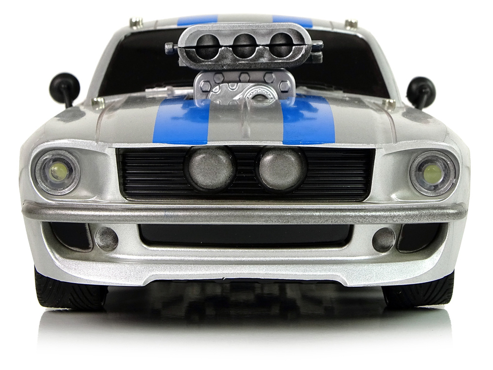 Samochód posiada lekką i wytrzymałą konstrukcję, sportowy design z dwoma niebieskimi pasami na dachu, srebrną sprężarką na masce auta, dodają efektu. Gumowe opony gwarantują przyczepność do podłoża podczas sterowania autem.