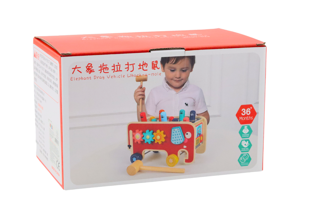 - Whac-a-Mole - drewniana gra dla dzieci z autkiem w kształcie słonia. Z młotkami. Rozwijaj umiejętności zręcznościowe i baw się!
