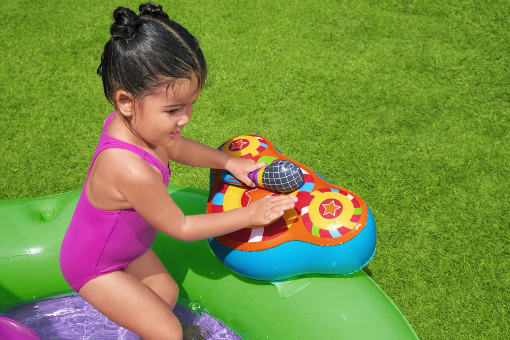 Chciałbyś zapewnić swojemu dziecku niezapomnianą zabawę w zaciszu twojego ogrodu? Dmuchany plac zabaw pozwoli zamienić go w prawdziwe centrum rozrywki dla twojego dziecka. Basen z dmuchanymi atrakcjami takimi jak dmuchana zjeżdżalnia,wodna fontanna, z pewnością zachwyci Twojego malucha i stanie się jego ulubionym miejscem do zabawy. Basen wykonany jest z miękkiego lecz trwałego materiału i jest jak najbardziej bezpieczny dla najmłodszych pociech. Głównymi atrakcjami są dmuchana zjeżdżalnia oraz łuk z którego po podłączeniu do węża ogrodowego będzie lała się woda. Z placu zabaw może korzystać kilkoro dzieci jednocześnie, dzięki licznymi atrakcjami każde z nich znajdzie coś dla siebie.