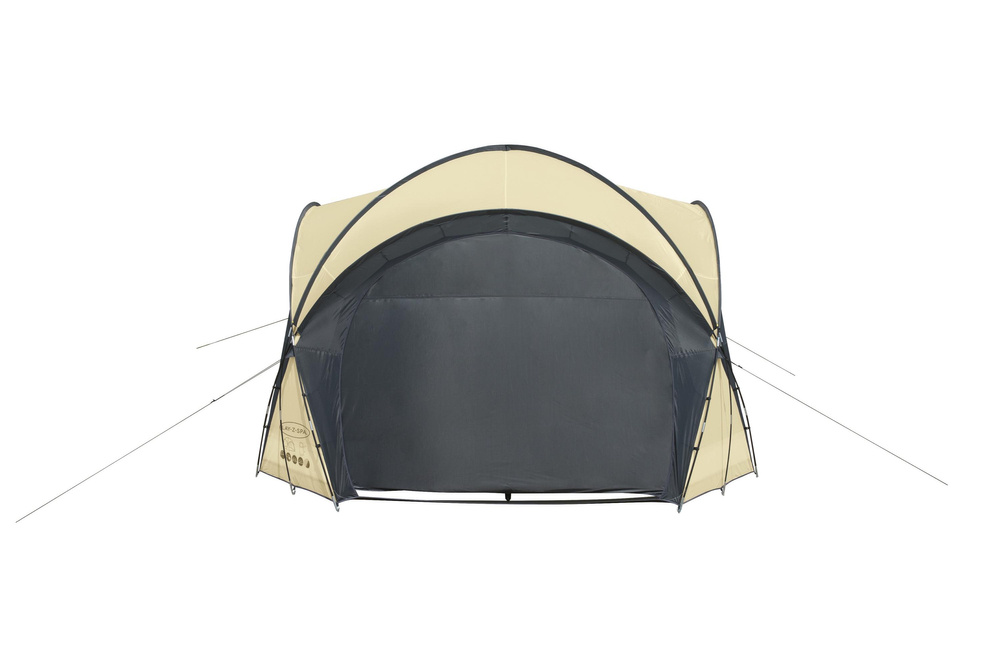 Rozkładany namiot to idealne rozwiązanie na upalne dni. Kompatybilna ze wszystkimi nadmuchiwanymi spa i basenami o średnicy do 3,66 m, zapewnia prywatność i chroni przed deszczem, słońcem i innymi czynnikami pogodowymi. Altana jest podobna do namiotu i ma 4 duże kieszenie do przechowywania przedmiotów osobistych oraz 4 zdejmowane drzwi z tkaniny i siatki. Namiot może być używana przez cały rok. Montaż jest szybki i łatwy - zajmuje tylko 15 minut. 255 cm wysokości umożliwia komfortowe wejście do basenu i swobodne poruszanie się