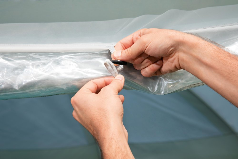 Rozkładany namiot to idealne rozwiązanie na upalne dni. Kompatybilna ze wszystkimi nadmuchiwanymi spa i basenami o średnicy do 4,88 m, zapewnia prywatność i chroni przed deszczem, słońcem i innymi czynnikami pogodowymi. Altana jest podobna do namiotu Namiot może być używany przez cały rok. Montaż jest szybki i łatwy - zajmuje tylko 15 minut. 295 cm wysokości umożliwia swobodne poruszanie się oraz komfortowe wejście do basenu nawet przy pomocy drabinki.Stwórz swoją własną oazę na swoim podwórku dzięki okrągłej kopule basenowej. Ta kopuła jest podobna do namiotu i ma unikalną dwuwarstwową konstrukcję, która zapewnia czystość basenu i ochronę przed słońcem.