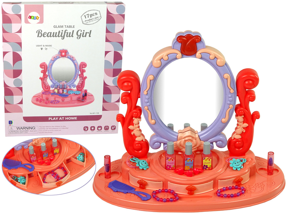 Zabawka została zaprojektowana z myślą o najmłodszych dziewczynkach, dlatego wyprodukowano ją z atestowanych, w pełni bezpiecznych materiałów. Konstrukcja toaletki i wzory toaletki dodają szyku i elegancji.