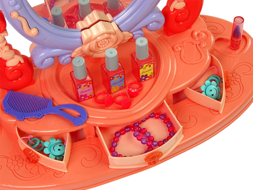 Większość dziewczynek już od najmłodszych lat chce się czuć wyjątkowo i pięknie. Często zdarza się, że nawet podkradają swoim mamom kosmetyki i biżuterię! Od dziś Twoja mała dziewczyna może malować się z mamą i uczyć się podstawowych zasad urody przy swojej pięknie zdobionej toaletce.