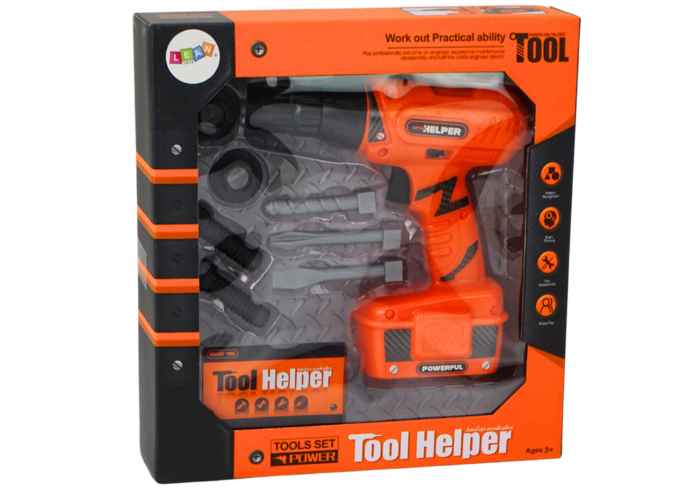 - Zabawa w domowego złotą rączkę rozwija zdolności manualne, precyzję i logiczne myślenie. Dzieci uczą się napraw przy pomocy wkrętarki z realistycznym dźwiękiem i wymiennymi końcówkami. Bezpieczne narzędzia z plastiku w pomarańczowym kolorze gwarantują wie