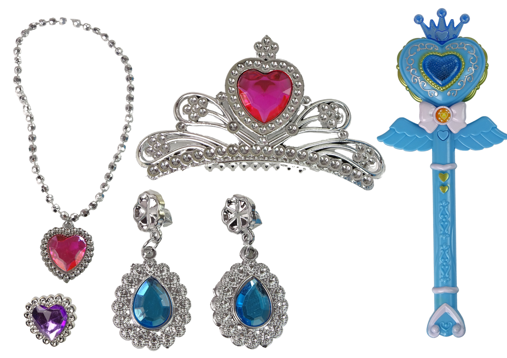 Przepiękny zestaw małej księżniczki - wróżki, z magiczną różdżką i biżuterią, to idealny prezent dla dziewczynki powyżej 3-go roku życia. Niebieska różdżka z sercem i koroną wyczaruje długie godziny niezapomnianej zabawy, dzięki interaktywnym funkcjom.