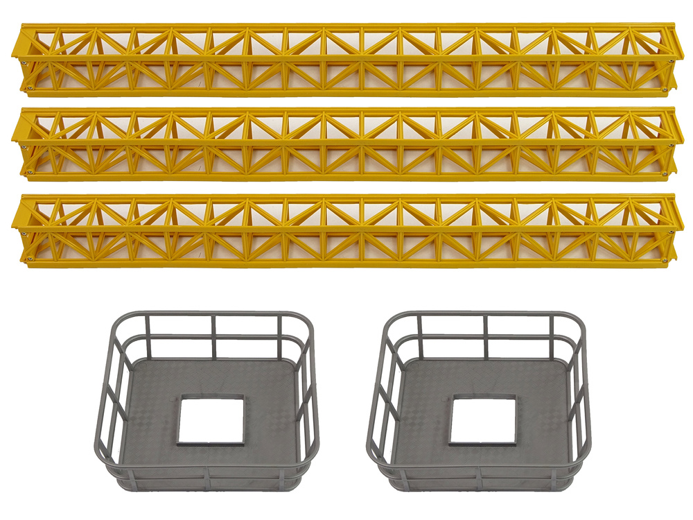 W zestawie znajduje żuraw z akcesoriami i kontroler do sterowania pracą żurawia. Zaletą żurawia jest to, że hak wysuwa się w dół i w górę wciąga swobodnie. Na końcu haka można zaczepić wiaderko lub platformę, którą możesz przewozić mniejsze rzeczy z miejsca na miejsce.