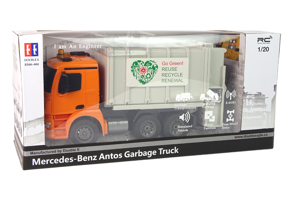 Zdalnie Sterowana Ciężarówka Śmieciarka Mercedes- Benz Antos Pomarańczowa Kosz