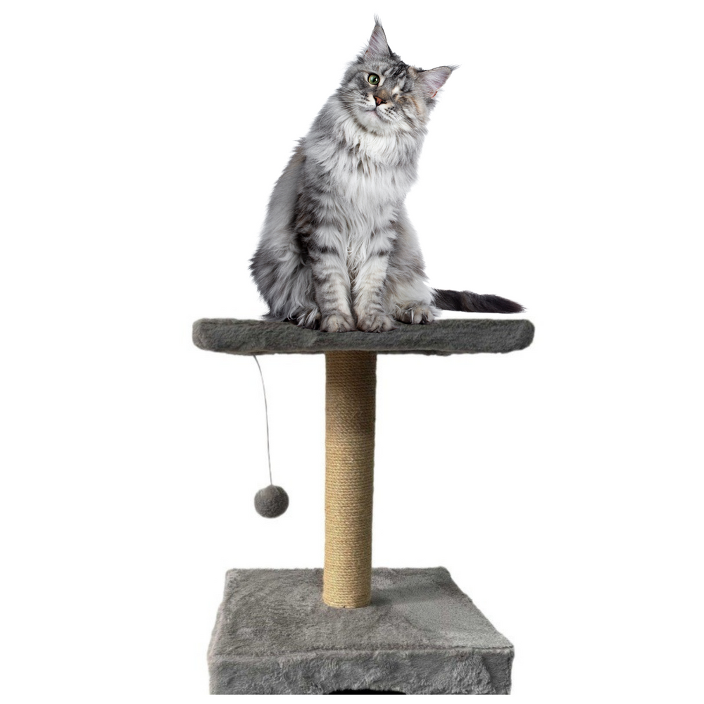- Drapak dla kota z domkiem, legowiskiem, słupkiem i myszką: Stabilna konstrukcja, słupek owinięty mocnym sznurem sizalowym, miękki plusz. Łatwy montaż, w zestawie instrukcja i śruby. Wymiary: podstawa 31x31 cm, wysokość 56 cm. Idealny do zabawy i odpoczynk