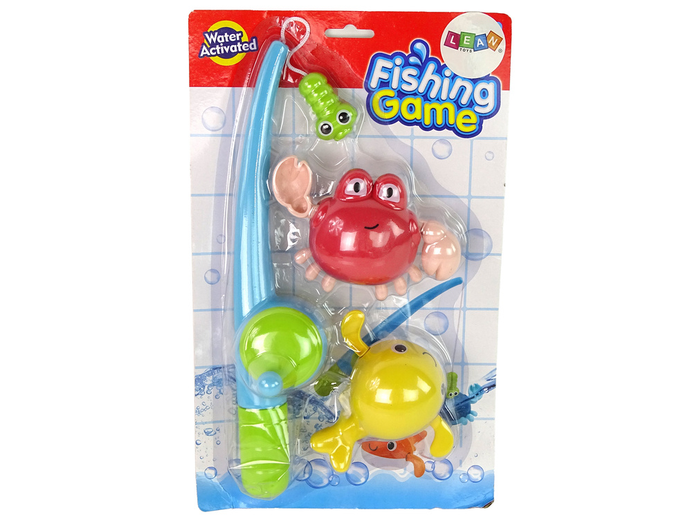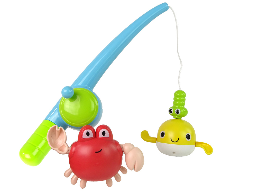 W zestawie znajdują się wędka z kołowrotkiem, krab i rybka. Wędka posiada magnesu na końcu, można się nią bawić za pomocą kołowrotka, wysuwać sznurek i skracać lub łapać ryby. Zwierzęta morskie kryją w sobie inną niespodziankę, z tylu każdego z nich znajduje się małe pokrętło wystarczy przekręcić, położyć zabawkę na tafli wody, a zobaczysz jak zacznie płynąć. Krab i rybka posiadają ruchome płetwy, co umożliwia im poruszanie. Kolorystyka malucha na pewno przyciągnie jego uwagę.