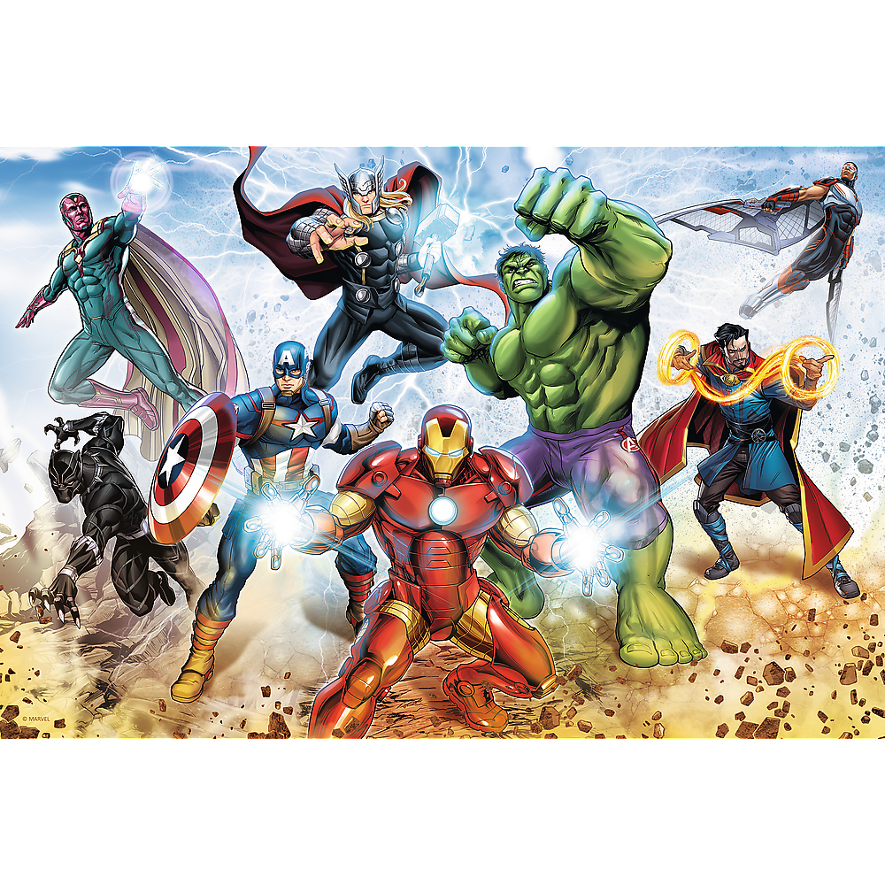 Puzzle składające się ze 160 elementów, zaprojektowaną z myślą o wszystkich fanach i fankach filmu animowanego Avengers. Po ułożeniu układanki powstanie obrazek o wymiarach 410 x 275mm. Produkt został wykonany z wysokiej jakości materiałów, z zastosowaniem specjalnego kalandrowanego papieru odbijającego światło, co ułatwia układanie.