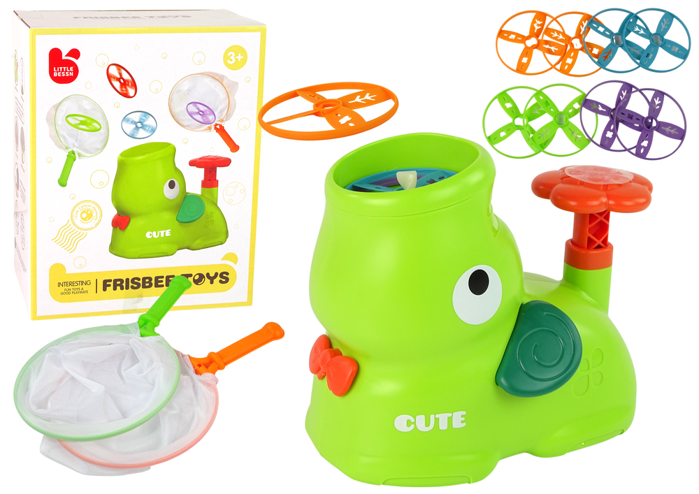 Zabawka przeznaczona jest dla dwóch osób. Urządzenie w kształcie słonia to wyrzutnia dysków. Instalujesz dysk w miejscu przeznaczonym, czyli główce. Naciskasz przycisk, a dysk szybuje w górę. Twoim zadaniem jest złapanie kręcącego się dysku w siatkę. Zasady zabawy ustalacie sami.