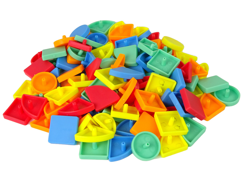 Cały zestaw składa się 112 sztuk. W środku znajdują zestaw małych klocków w różnych kształtach geometrycznych. Bez problemu możesz je przyczepić do tablicy i ułożyć z nich wzór. Książeczka dołączona do zestawu przedstawia przykładowe obrazki.