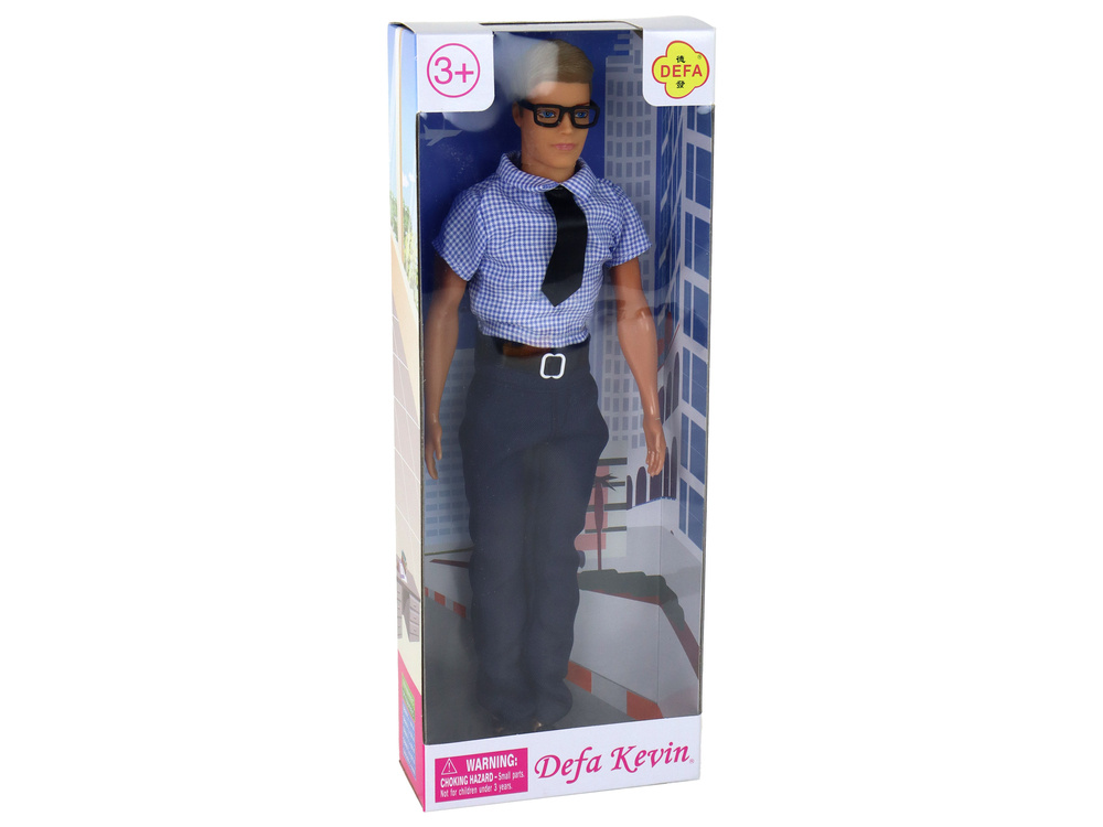 - Lalka Mężczyzna Kevin to elegancka i interaktywna zabawka dla dzieci. Ubrana w różowo-białą koszulę w kratę z krawatem oraz granatowe spodnie, Kevin ma ruchome ręce, nogi i głowę, co pozwala na różnorodne zabawy i kreację postaci.