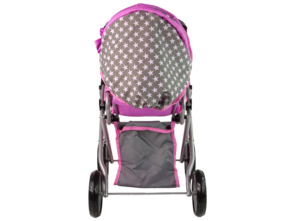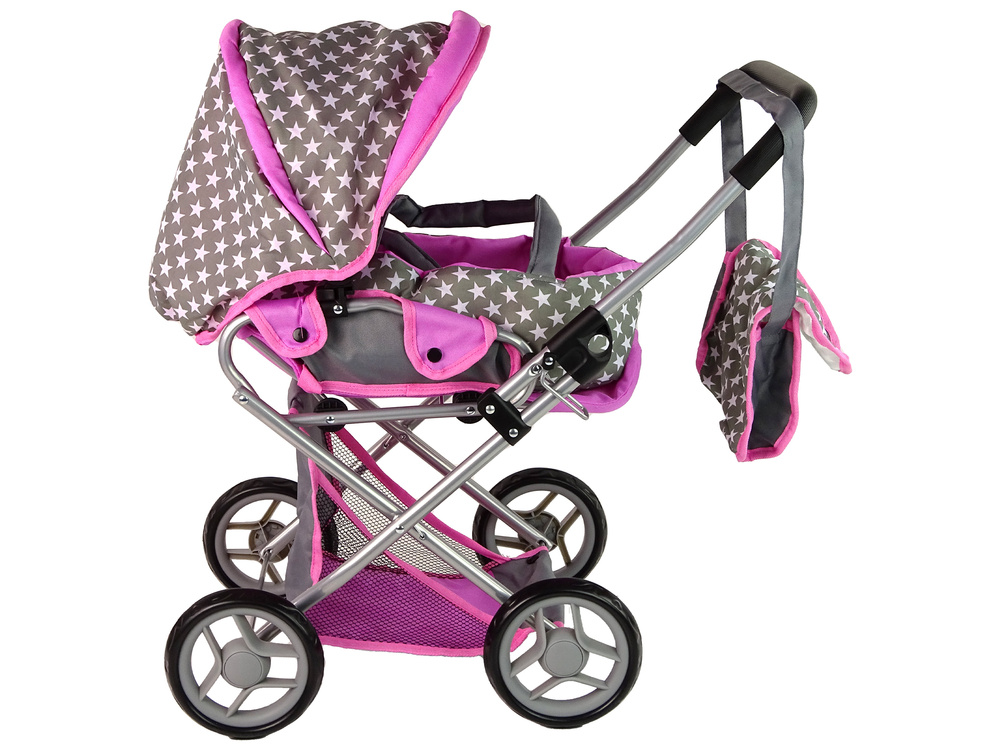 Wózek z torbą ma szary kolor z białymi gwiazdkami, daje dużo uroku. Wzornictwo przypomina prawdziwy odpowiednik, co dodaje realizmu. Konstrukcja wykonana jest z solidnych i wytrzymałych rurek aluminiowych o srebrnym kolorze, które połączone są czarnymi, plastikowymi łącznikami. Użycie do produkcji wózka wysokogatunkowego tworzywa odpowiada za komfort i wygodę płynące z użytkowania zabawki, co w połączeniu z ulokowaniem wózka na czterech wąskich kołach podnosi łatwość prowadzenia wózka i manewrowania nim.